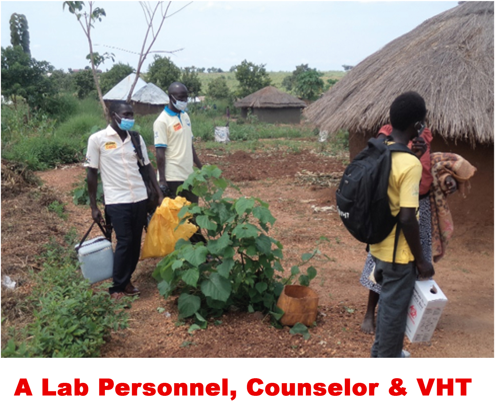 A lab personnel, counselor and VHT during a community follow up.