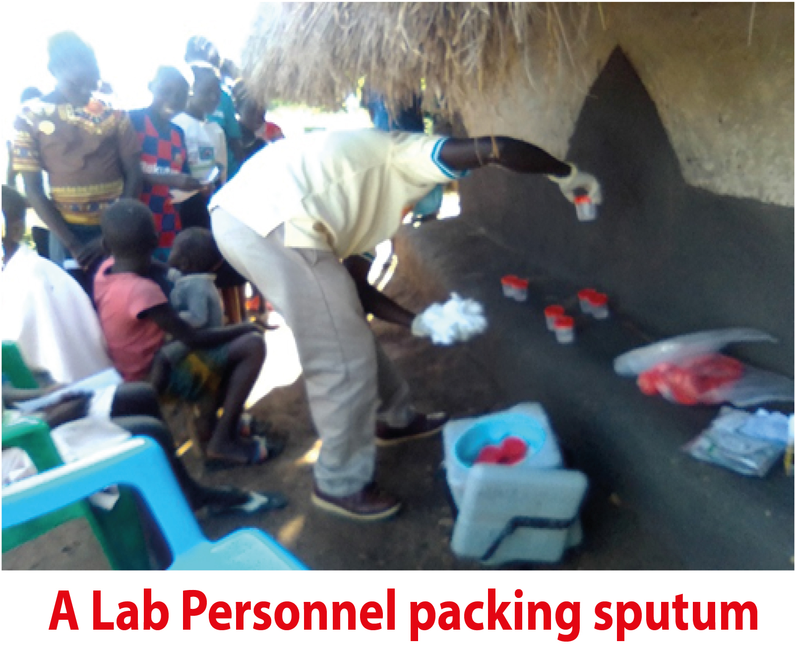 Lab Personnel packing sputum samples.